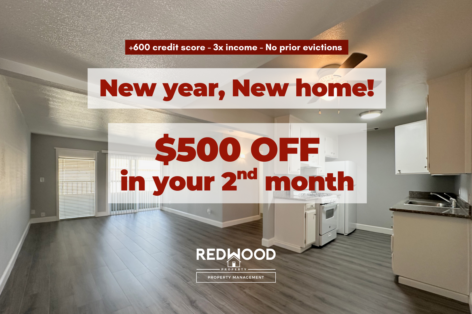| New Year, New Home! $500-OFF in your 2nd month's rent |